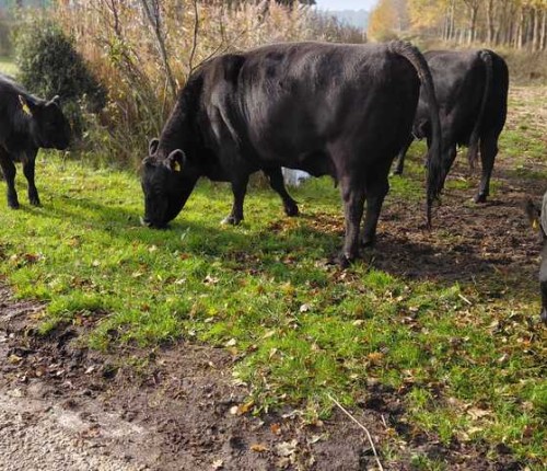 Schafe, die sich bemerkbar machen, wenn wir ankommen, aber auch Rinder, die plötzlich vor einem im Wald stehen können.